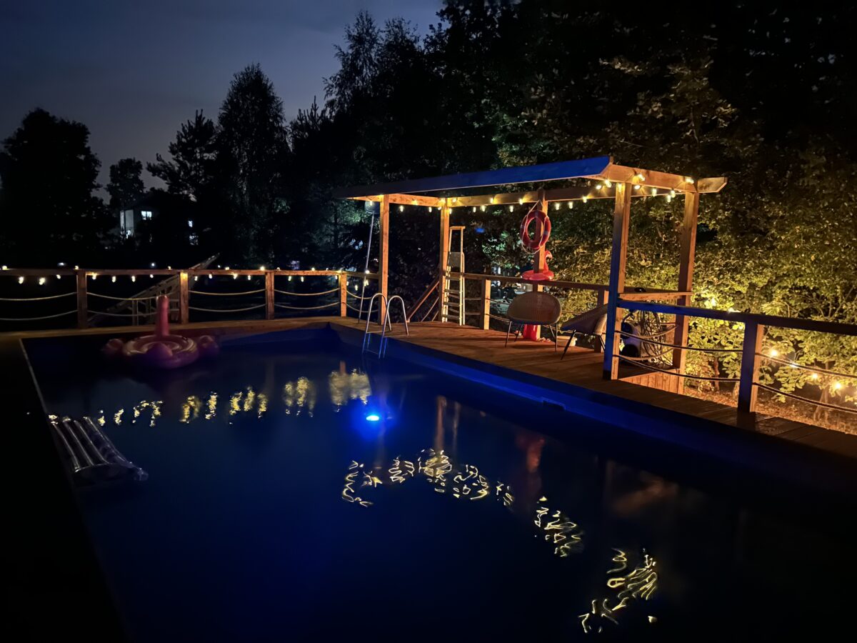 Zlokalizowany na dużej, szczelnie ogrodzonej działce o powierzchni 0,5 ha. Dojazd z Warszawy to zaledwie 40 minut, 12 minut od autostrady. Do dyspozycji gości bez dodatkowych opłat: jeden domek na działce, sauna zewnętrzna, balia z jacuzzi, beczka do morsowania, w lato duży podgrzewany basen. Wędzarnia, grill, miejsce na ognisko. Działka bez sąsiadów, która gwarantuje prywatność. Szczelnie ogrodzony teren, bezpieczny nawet dla małych piesków ????